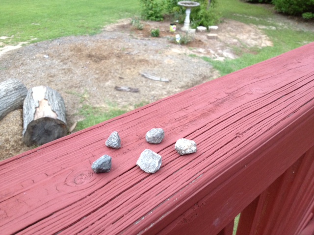 Five rocks. I’d read that five was the number of rocks David had when he went to fight Goliath (1 Samuel 17:40). Daddy was definitely in a fight for his life against some kind of Giant. I figured he needed all the fighting power he could get.