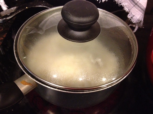 I tried using a saucer to cover the top while the rice cooked. It worked okay but getting that very hot saucer off the top was quite difficult and, at times, painful. I just had to make do. But I refused to go buy another pot and lid.