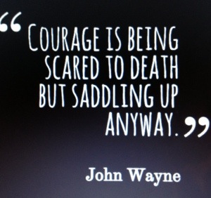 I love this quote by John Wayne. Yessir. That’s what it is. And I’m thinking after all the times I’ve given in to the fear in my life, it’s time that I learn to saddle up. There is not right or wrong in the trying; it’s just important that I do it.