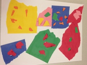 Miss A was the last one to share. My new friend. The one who had taken my arm and was so excited to come and be a part of our group. She was so timid in the beginning, unsure if I had a certain way or certain thing I wanted her to create. No ma’am, I assured her, you do it just how you want and it’s yours to take with you. She smiled at that and worked so diligently. She said that all of these colors reminded her of nature and that made her happy. We talked about how we are made in the image of a Creator and so that means that there is an artist inside each of us–we’d shared this a couple of weeks back. I love that her picture reminds us of that, and I adore her pieces and their lack of uniformity. It is imperfectly perfect. I hope she continues to find joy in it. As she left she asked me if we would be back tomorrow. “No, next Tuesday.” She nodded and smiled broadly. “I’ll be here. I sure will.” So thankful for her stepping away from her safe harbor and joining us today.