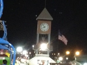 Oh all the sights and sounds of the Fair. And they only get better from the sky. We rode the Ferris Wheel with Mess Cat and her crew. I haven’t ridden it in years. I think my Fella was most excited that they lit it up just as we were boarding. There was an awesome view, but it went a bit fast for my taste. And we had to go over to the Midway to ride it, so I was just a tad out of my comfort zone. But being with family and laughing and enjoying the sunset from way up high–so worth it.