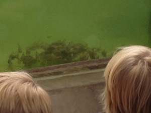This past Friday the littles and I went to Go Fish Education Center down in Perry. This is a beautiful facility that is run by DNR. The exhibits are interactive, and they have different areas set up like the waters of the different parts of Georgia, from the mountain streams up north to the swamps down south. You can even borrow a fishing pole and sit out by the pond and try your luck at fishing. It’s mostly a catch and release program, but in certain months (like October) you can take home what you catch.