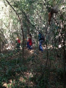 It was a beautiful day for wearing hoodies and vests and jackets and watching the patterns on the ground the sunlight made as it filtered through the trees.  At times it was hard to tell the difference between the grownups and the children.  In the end we arrived back at the starting point, having actually found one geocache and all with smiles on our faces.