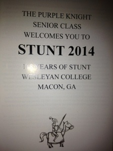 Today was also Welcome to Wesleyan Weekend. The day Wesleyannes bring young women–daughters, nieces, friends–to campus to attend mock classes, listen to the story of STUNT, eat in the dining hall, see dorm rooms, and attend STUNT.