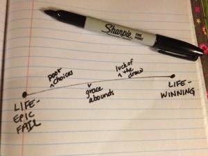 All of us live on a continuum. None of us are completely on either side of it. We all float somewhere in the middle–about where poor choices, luck of the draw, and grace abounds all meet.