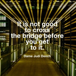 I’m going to try to let go and only worry about bridges that I can actually see up ahead. It’s a waste of time and energy to do otherwise, right?