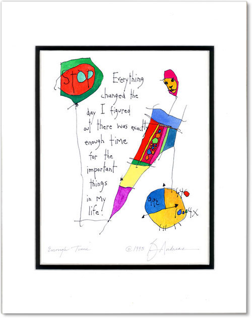 “Everything changed the day I figured out there was exactly enough time for the important things in my life.”–Brian Andreas, StoryPeople http://www.storypeople.com