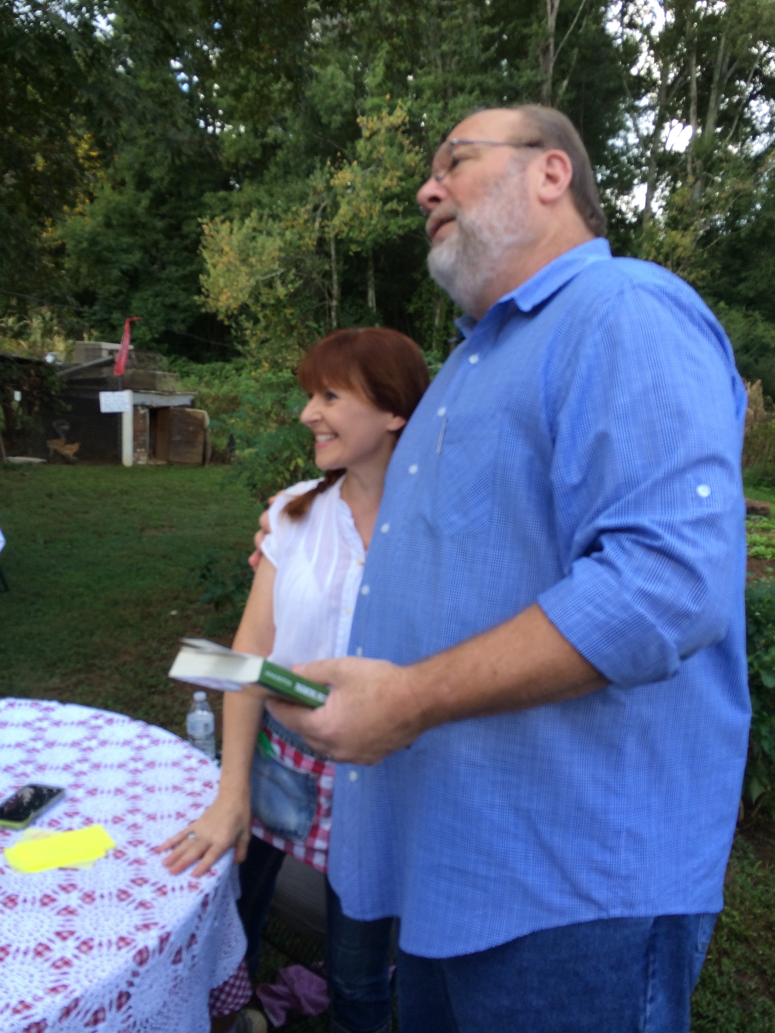 We dropped the Fella off at the British Car Show Fayre in Norcross and headed on our way. We made the necessary “pit stop” along the road that ran between where he was and where I was heading. (Did y’all know there are Targets with Starbucks in them? I’ve never…..I mean, you knew that bathroom was going to clean.) When we found our destination, a nice young man told us where to park. This book release celebration was being held at Farmer Billy’s farm and home. Folks were parked all along the yard and road. It looked like a fabulous turnout.