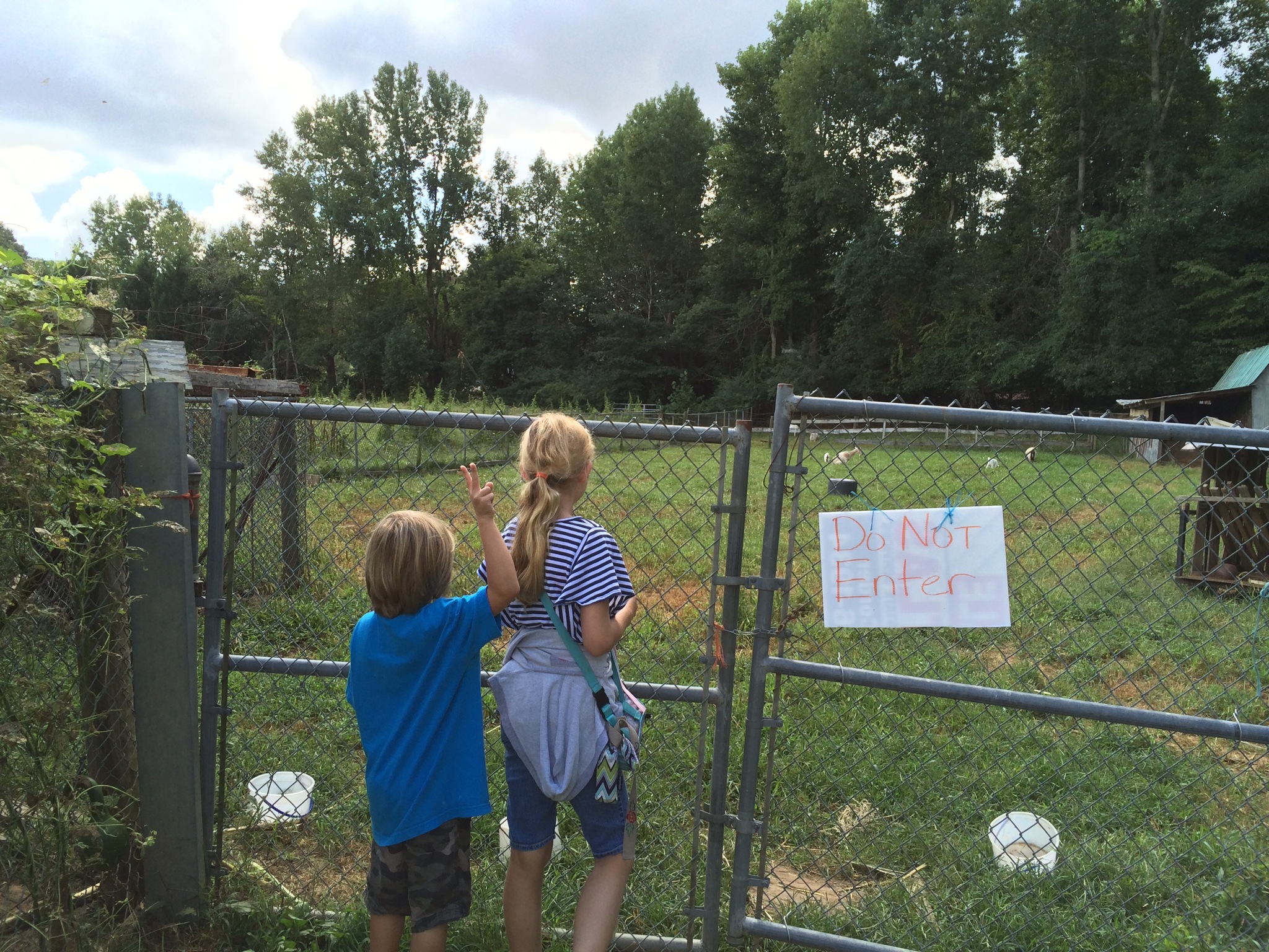 We continued our visit around the farm, peeking from a distance at the baby goat who has been under the weather, standing next to cool tractors, looking at the chickens and the goats.