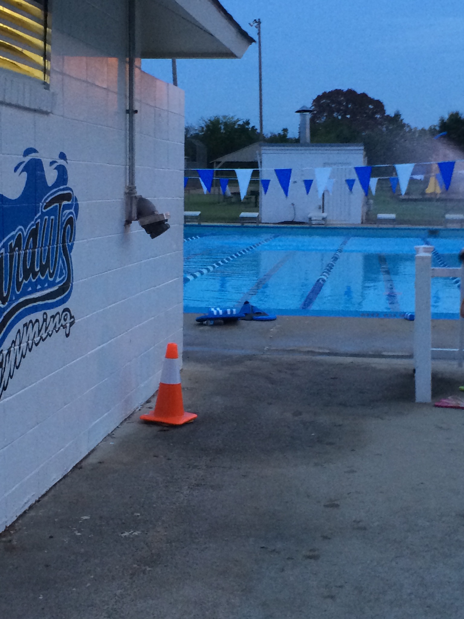 Our children taking lessons were in two of the three far lanes. These ladies walked over and started getting in the first four lanes. They spread out and all faced the one woman in the fourth lane. That’s when it hit me–water aerobics.
