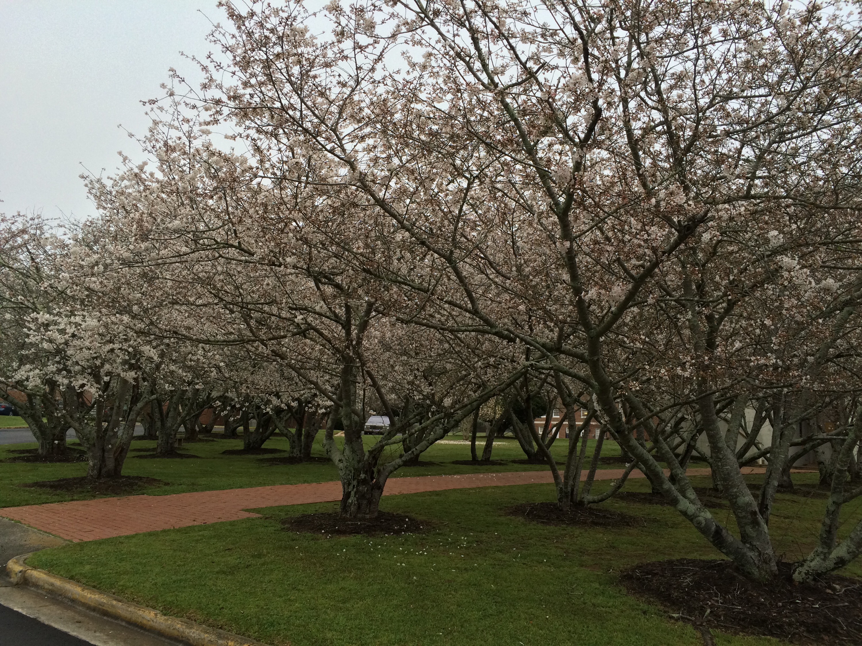 I’m thinking that the Bradford Pears are really Yoshinos. At least, those pink-tinged blossoms look exactly like my Yoshinos. 🙂 My favorites, and one of the reasons I love our alma mater so much. 🙂