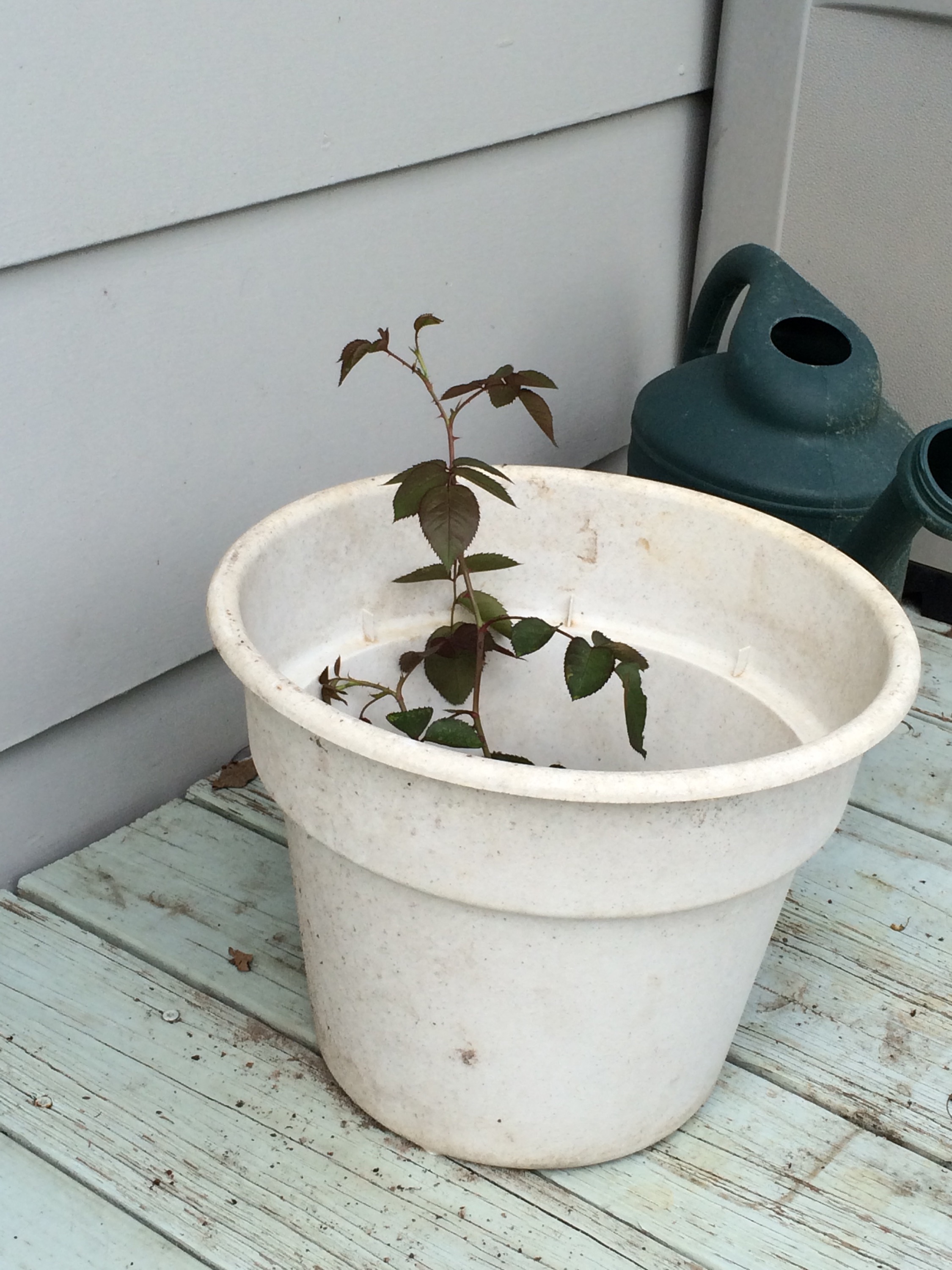 When I walked up towards the house yesterday, I saw a pot with a plant in it. For a second I thought, Oh well, isn’t that nice? Leroy got a new plant.
