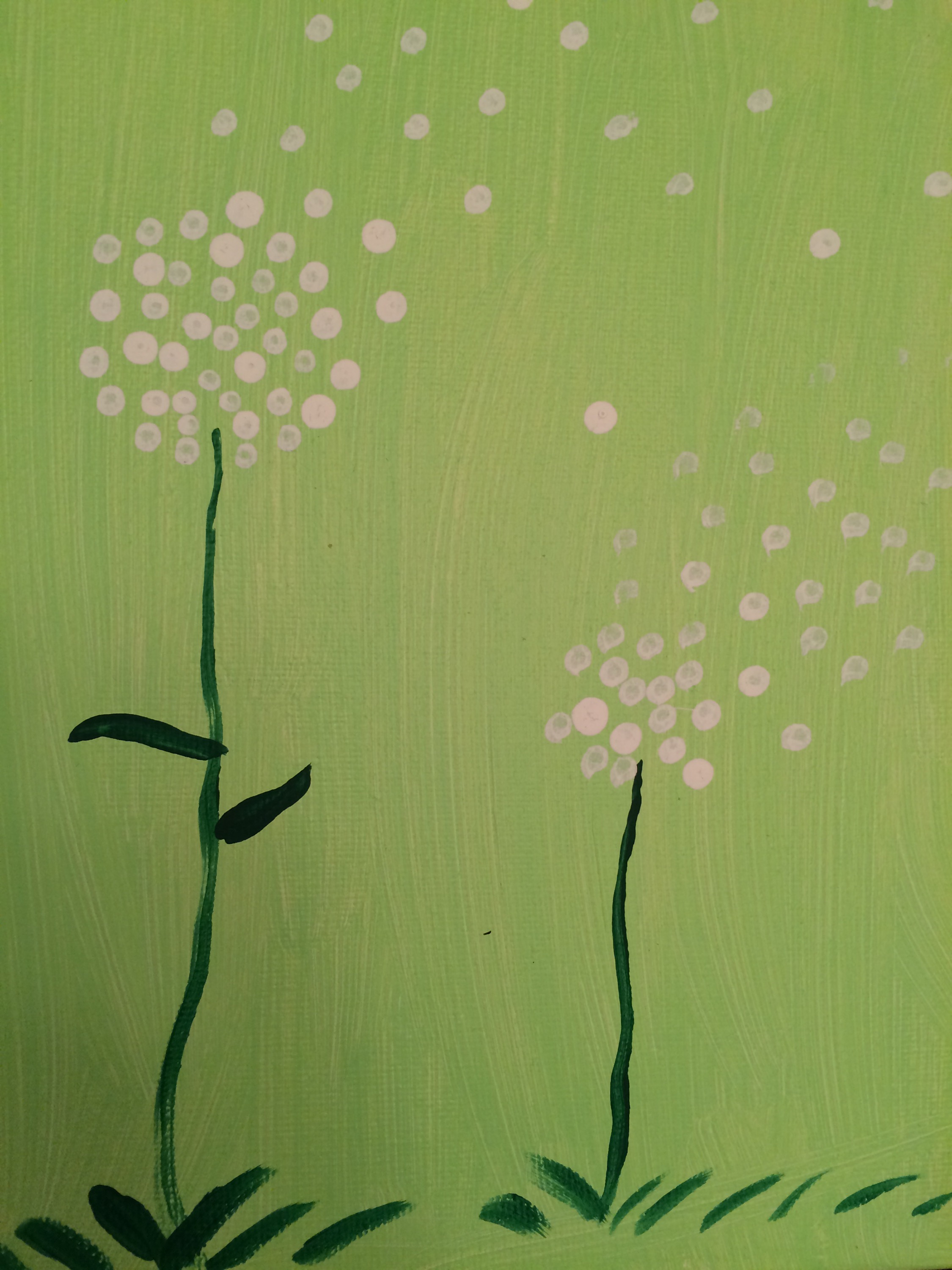 My artist friend recommended we use q-tips. I love q-tips–so versatile and easy to find at the store. And I love my artist friend for suggesting them, because I had the paints and the canvas, but I hadn’t been able to find the right sort of brushes.