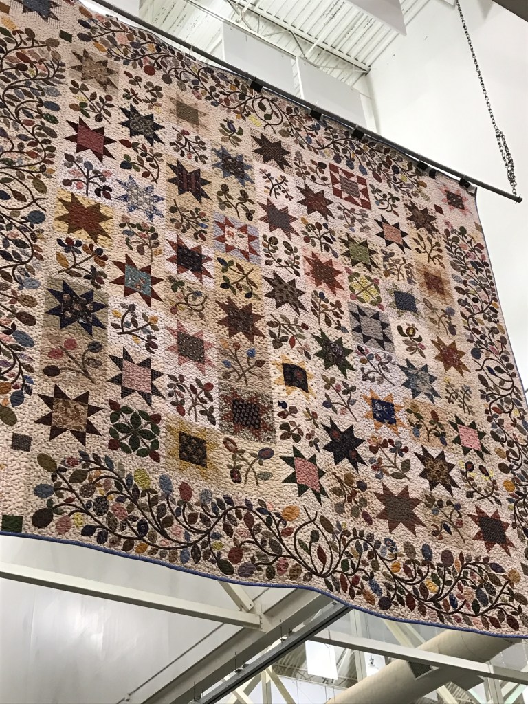 Oh. The quilts. They are my favorites. The time and efforts put into them are just mind-blowing. There are no shortcuts. Each step has to happen, one at a time, to create those works of art. As my friend shared about seeing them on exhibit, she talked about the art of creating them. And how this is becoming a lost art. She pondered on the way women used to gather to quilt together. We sat there, thinking about what that looked like and how it came to be.